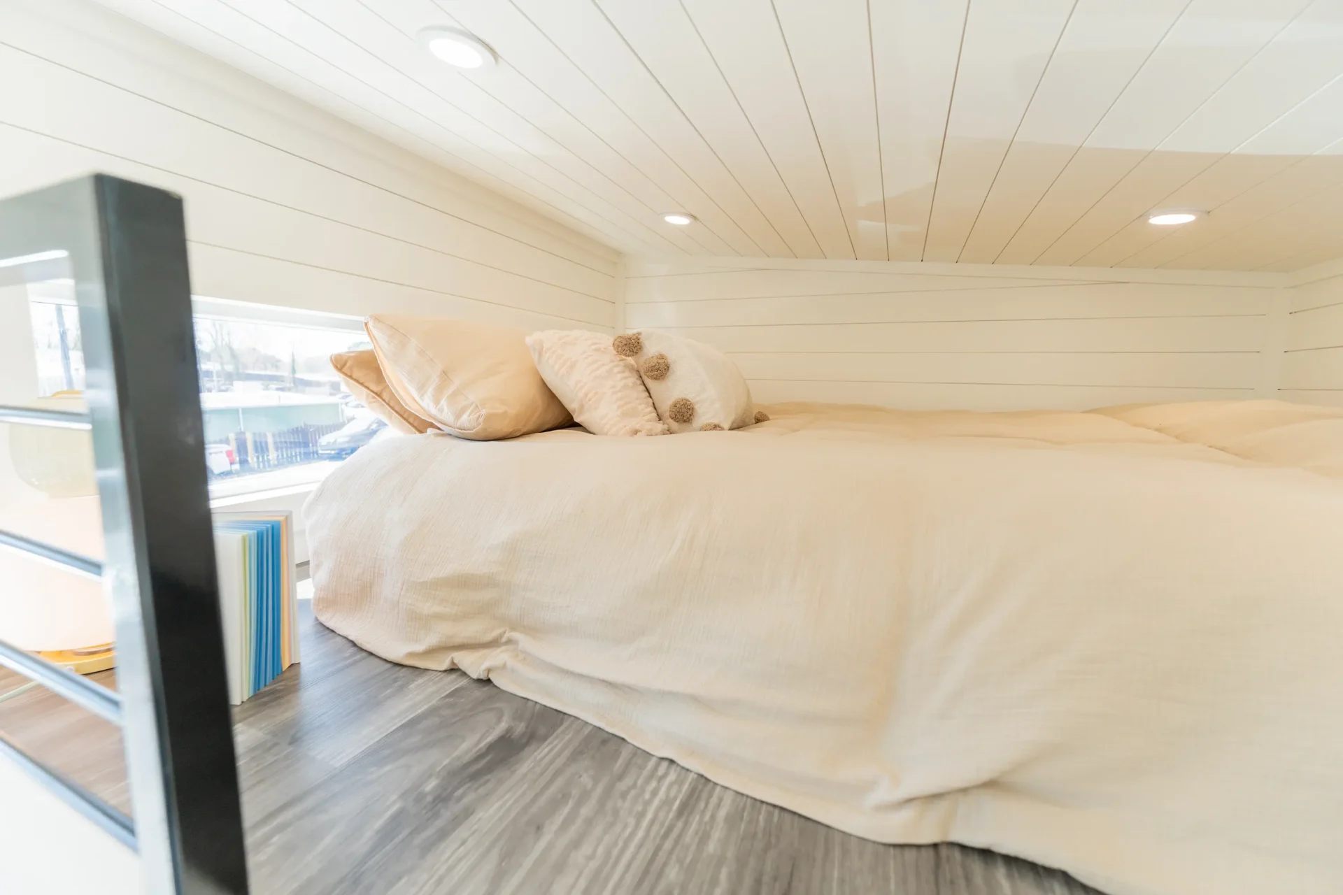The second loft includes cubby storage, making it perfect for extra sleeping space, storage, or a small office setup.