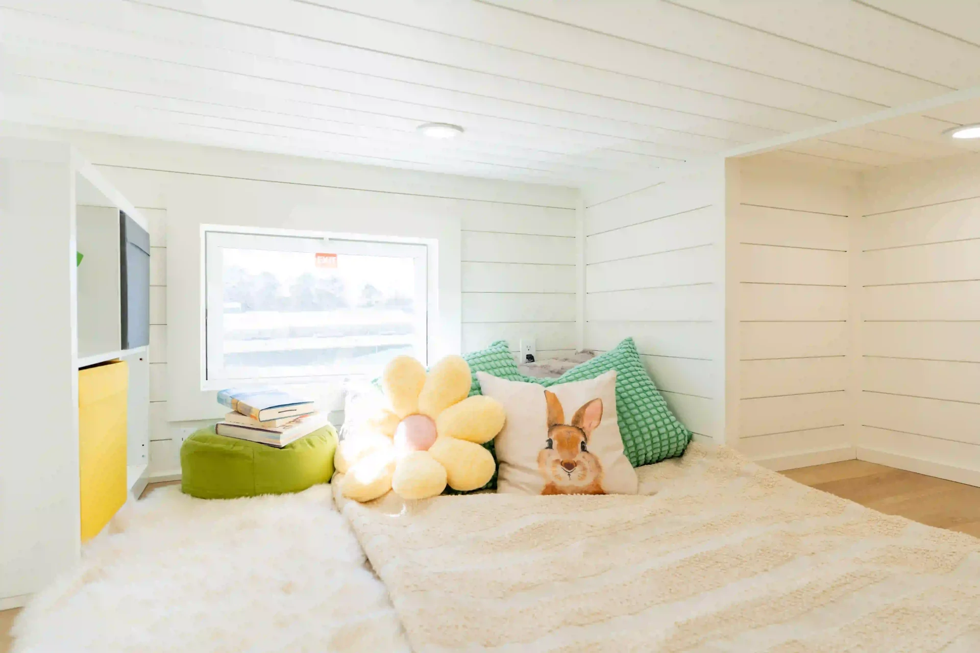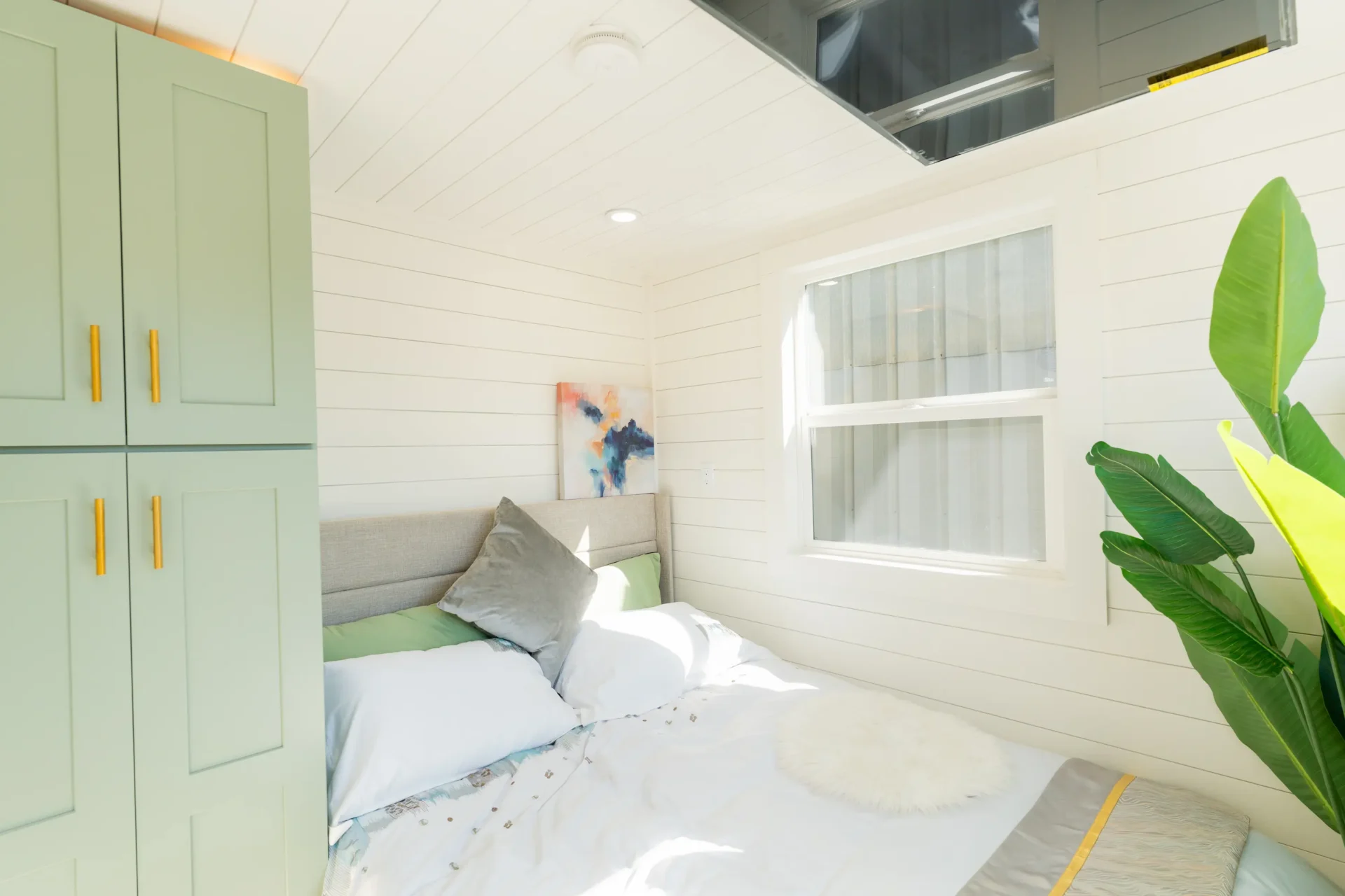 One of the most popular layouts our customers ask for is the first-floor bedroom and this model takes it to the next level. The bedroom is thoughtfully designed for comfort and convenience with a full-size lift-up storage bed that hides plenty of extra space underneath, a fold-down TV mount for ultimate entertainment flexibility, and ample closet space to keep everything organized. Natural light fills the room while smart touches like built-in couch storage platforms, LED lighting, and clever nooks make every inch usable.