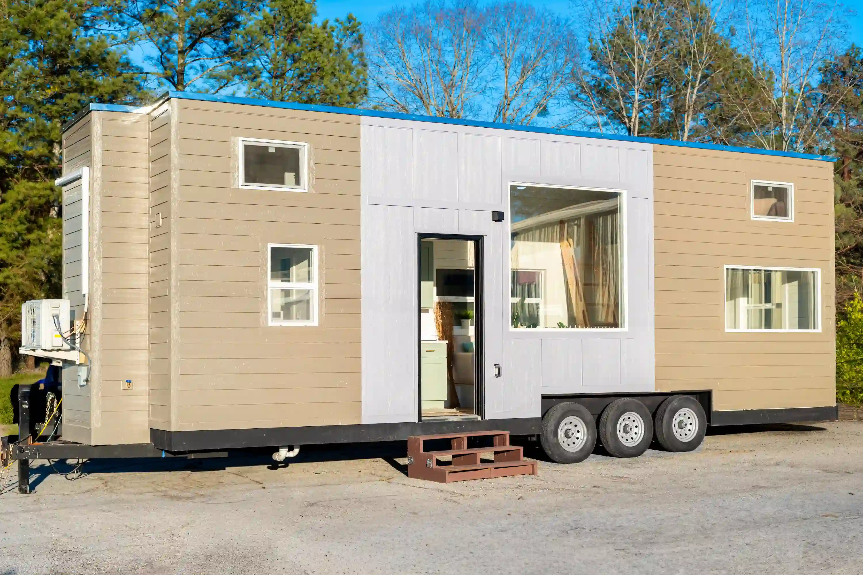 The Avalon 32 is our largest tiny home model, now even more upgraded for maximum comfort, storage, and practical style. Despite its size, it is fully towable and site-ready without the need for special permits. Inside, nearly 10 feet of ceiling height, two lofts, and an open layout create a bright, airy feel. The home features LP siding, a steel roof, black-framed dual-pane windows, and a custom triple-axle trailer that maximizes interior space.