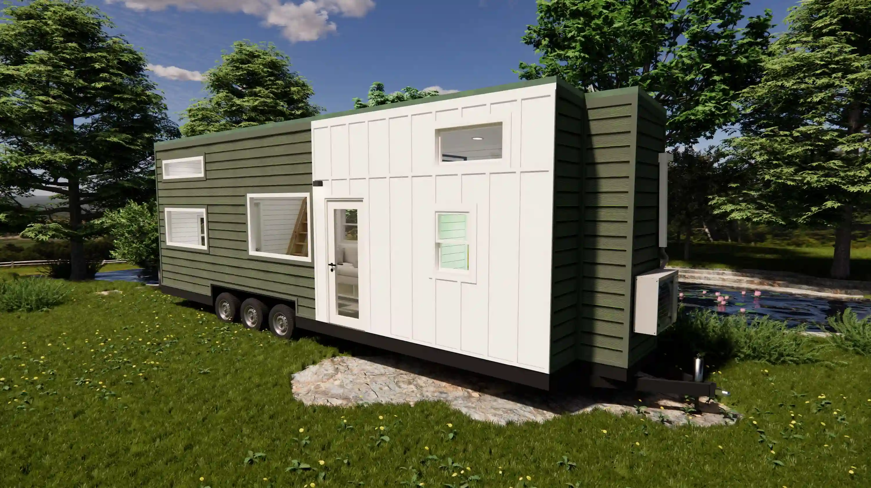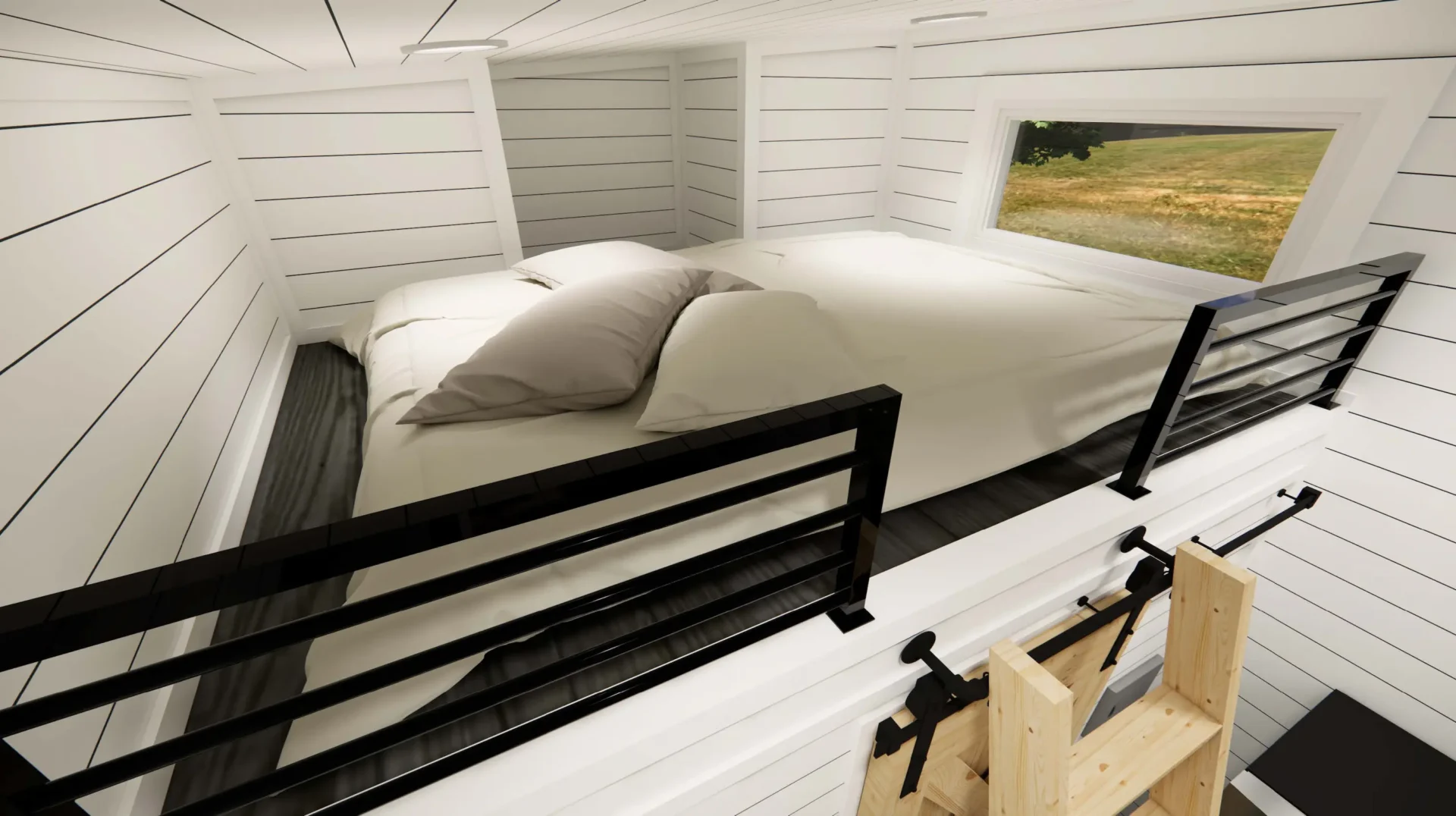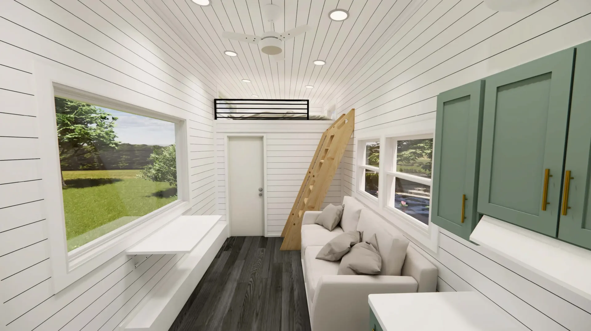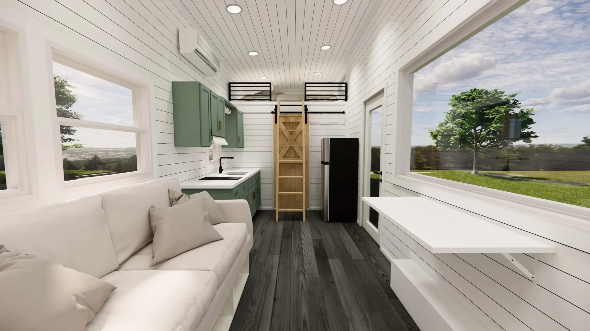 32’ Tiny Home featuring efficient layout, full kitchen, complete bathroom, first-floor bedroom, and dual lofts | Now open for pre-reservation