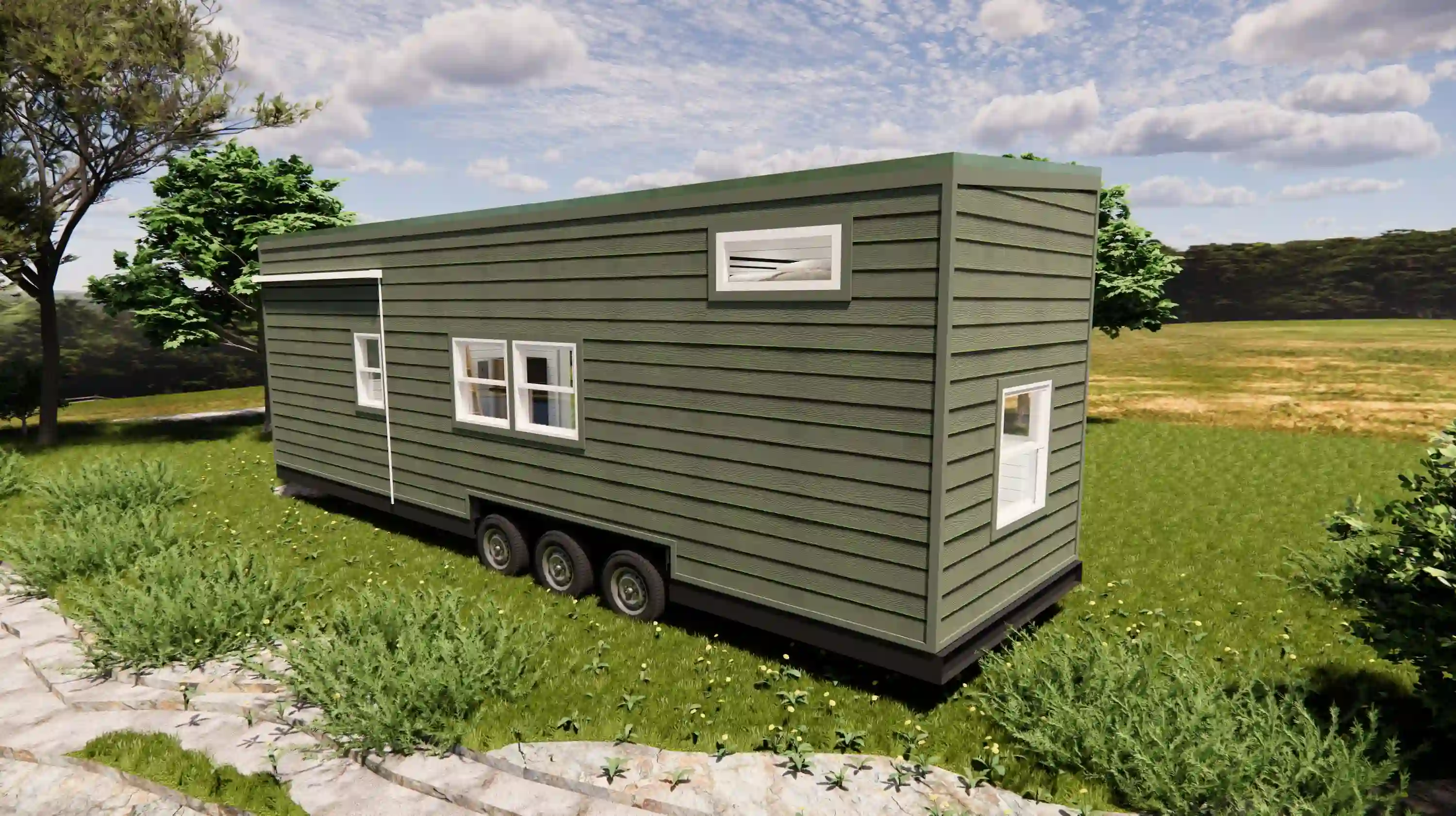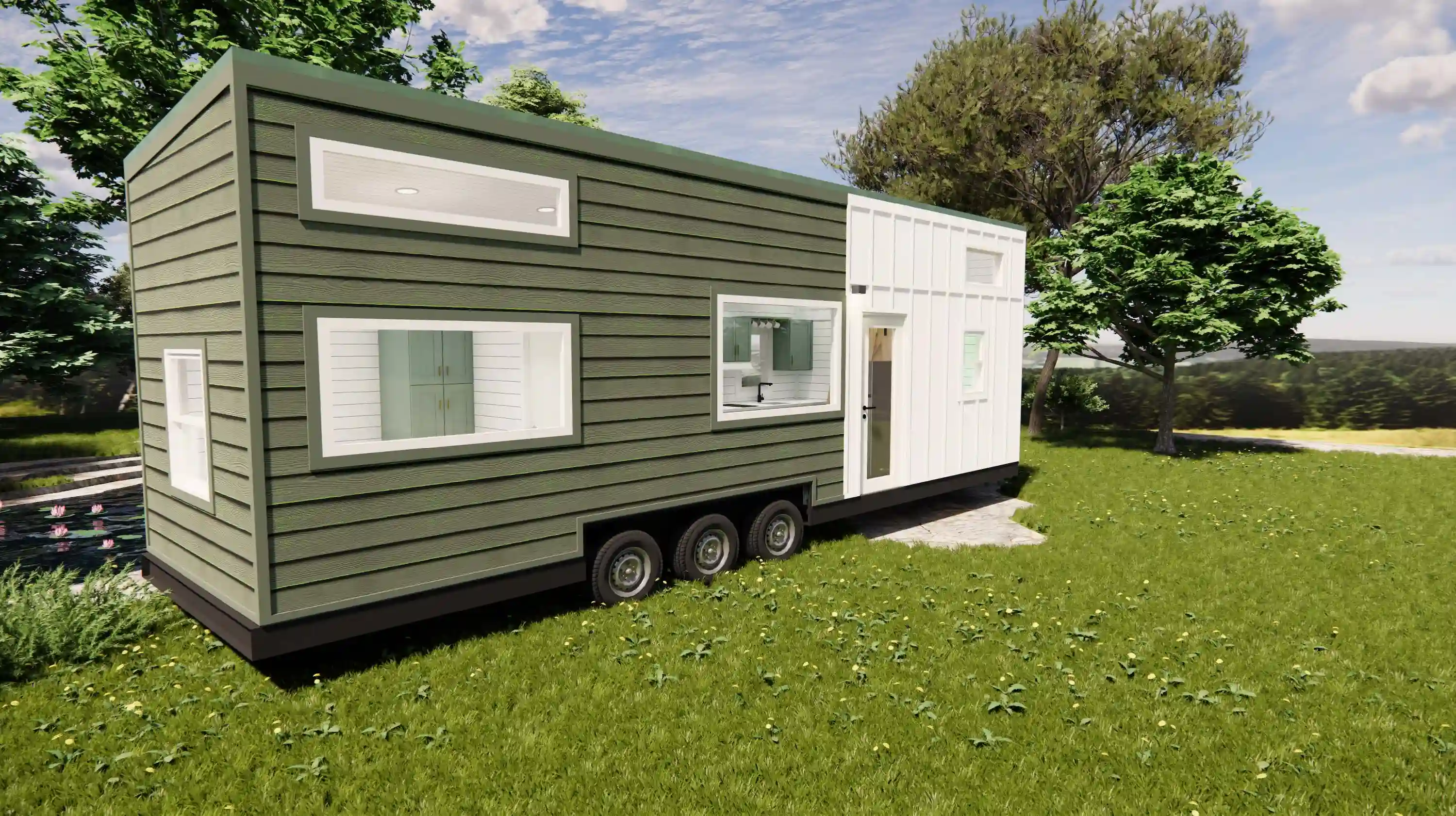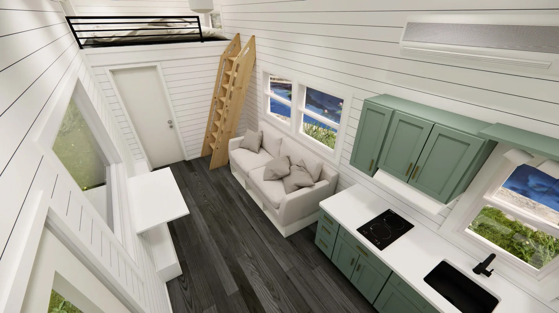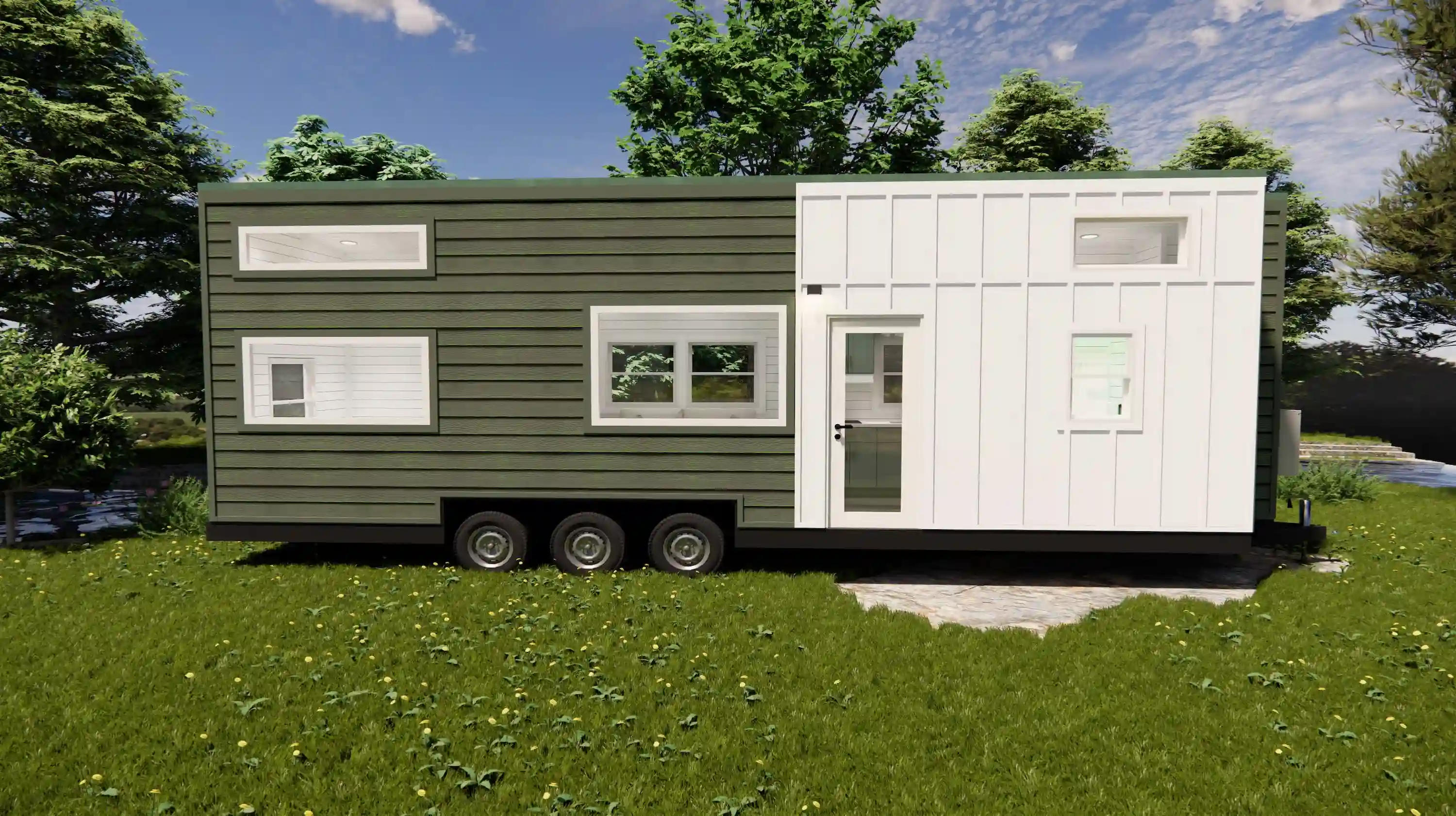 32’ Tiny Home featuring efficient layout, full kitchen, complete bathroom, first-floor bedroom, and dual lofts | Now open for pre-reservation