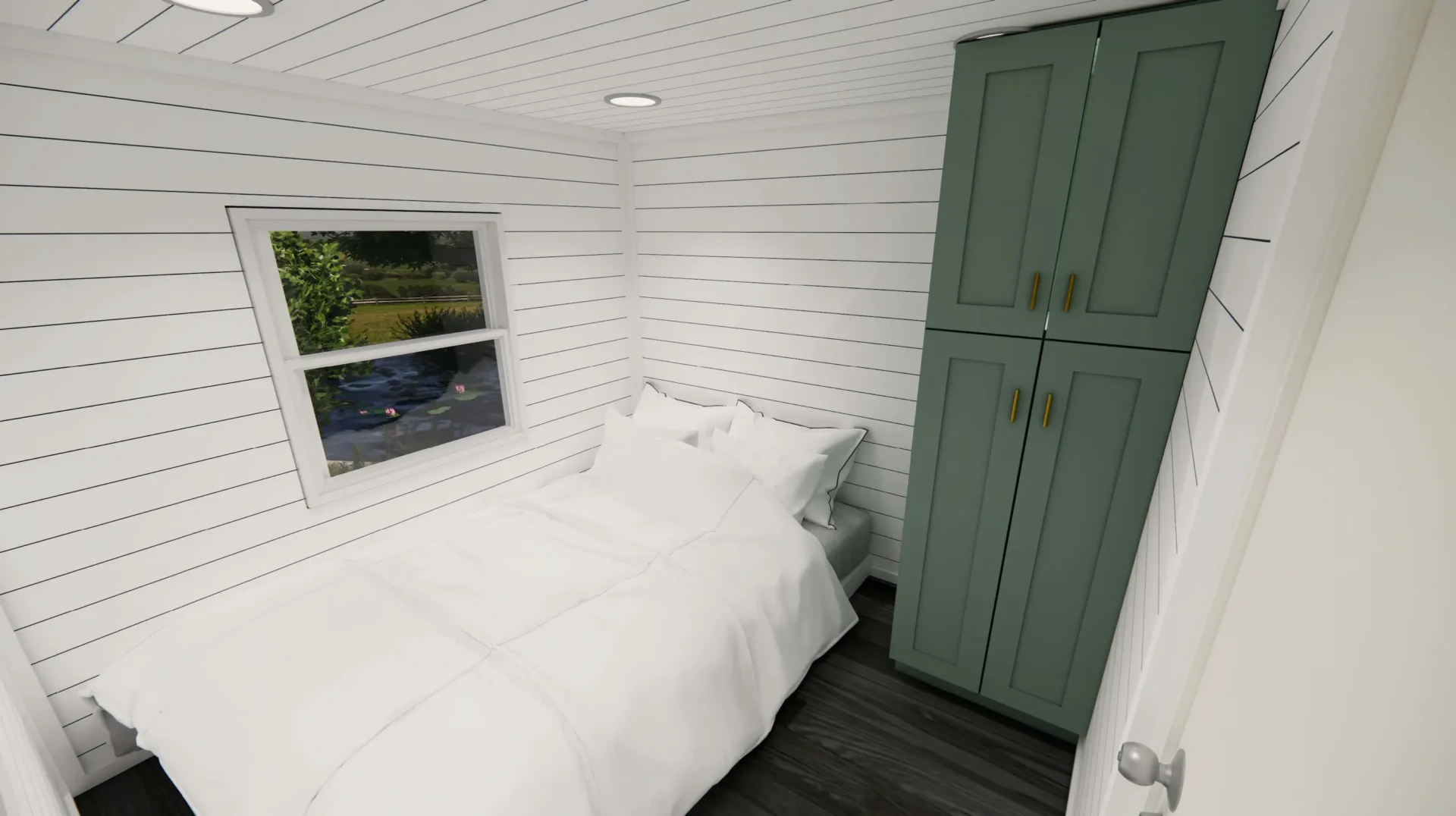 The first-floor bedroom is one of the biggest reasons this model feels so much like a full-size home. It gives you privacy, comfort, and the convenience of a true downstairs bedroom no climbing into a loft at the end of the day, no squeezing into a tight sleeping space, just a comfortable room that feels familiar and easy to settle into.