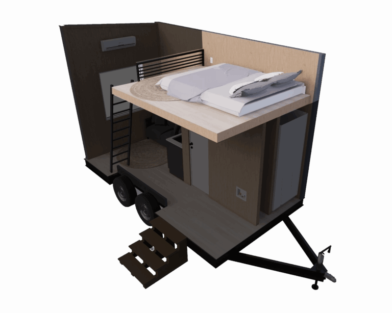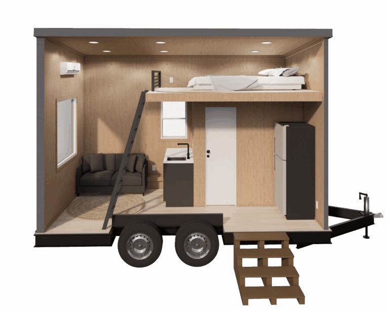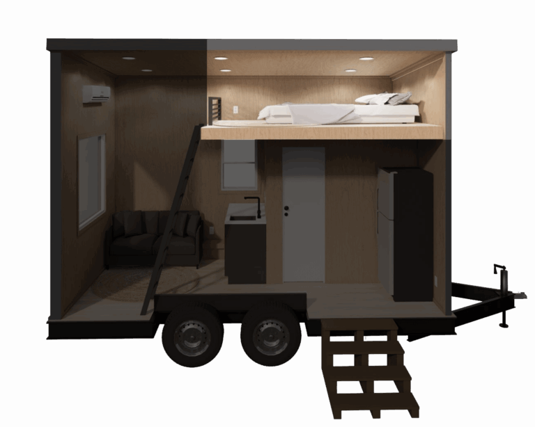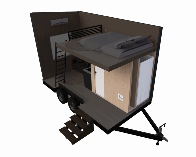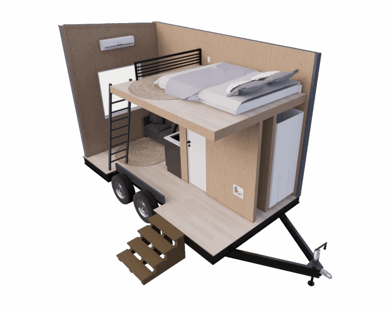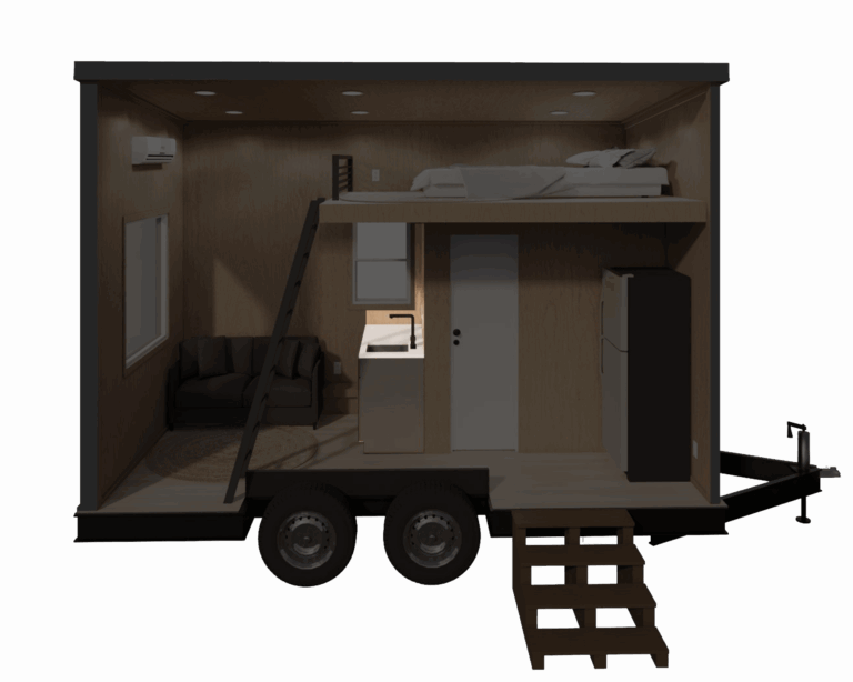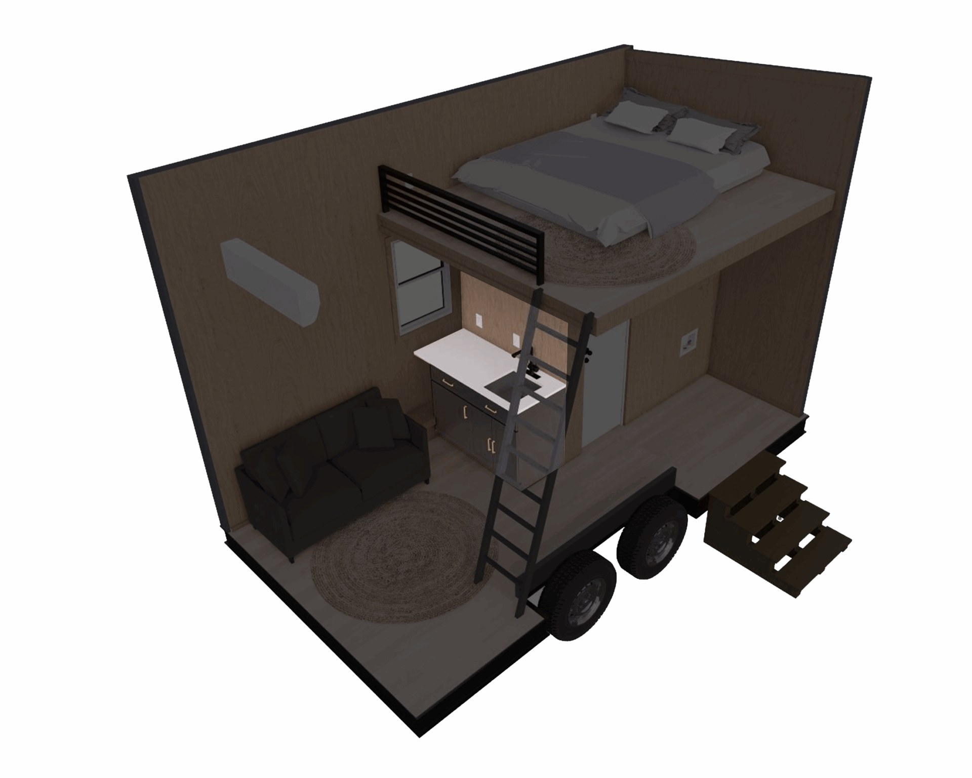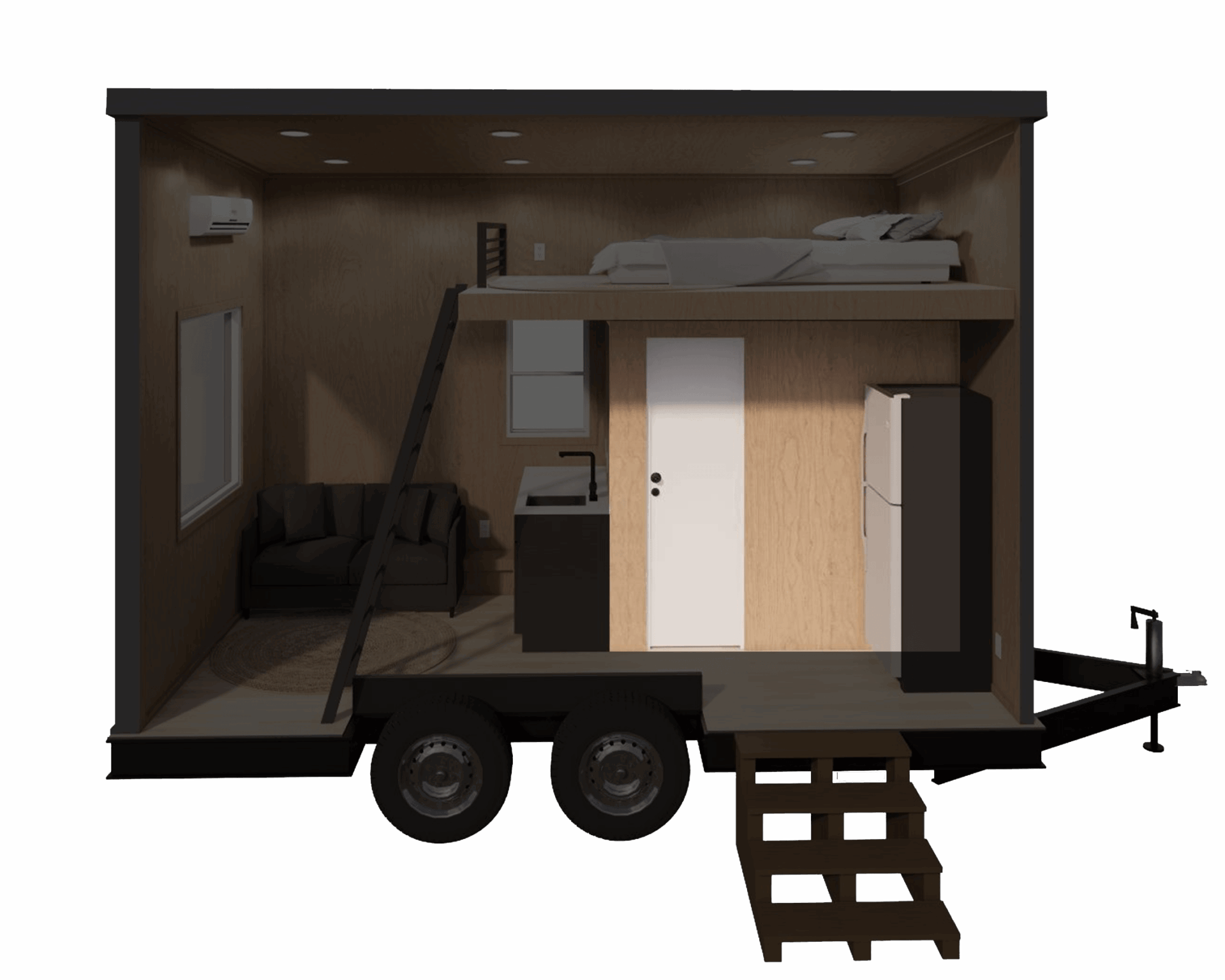 Element 16 is a no-frills tiny home built for affordability, quick delivery, and everyday use. It’s a practical choice for buyers looking for a simpler path to homeownership, for giving a loved one more independence, or for adding flexible space to a property. The layout includes a sleeping loft, full bathroom, and light kitchen setup—everything you need in a compact, towable build.